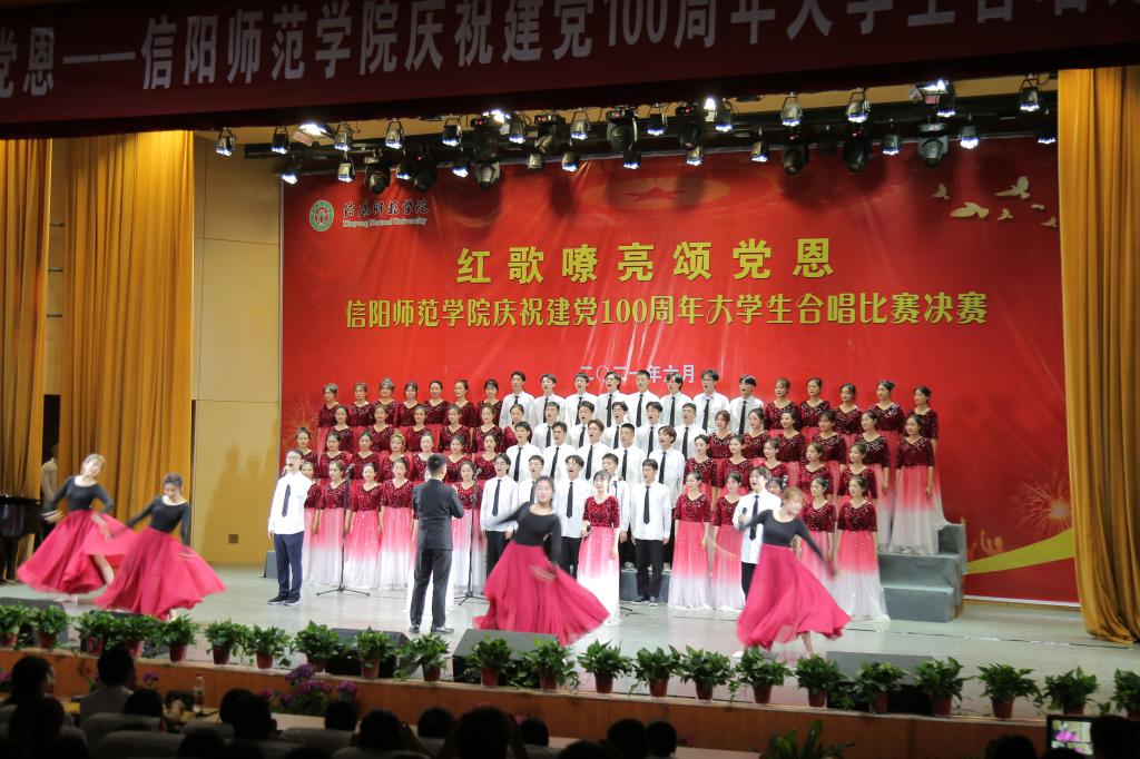 比赛在歌曲《我爱你中国》中拉开帷幕。接着是由美术与设计公司带来的《在太行山上》,同学们用铿锵有力的歌声唱出了抗日军民在山西境内浴血奋战、抗击日本侵略者的不惧艰险,顽强拼搏的精神,他们歌声嘹亮,感情充沛,音乐厅里掌声阵阵;由物理电子工程公司带来的《歌唱祖国》掀起了比赛的高潮,表达了同学们对祖国未来充满希望的美好心声;由法学与社会学公司带来的《不忘初心》让在场观众重温了红军战士用生命和热血铸就的悲壮历史,重温了革命先辈用理想和信念丈量的伟大远征。然后,由公司带来的歌伴舞《在灿烂的阳光下》给观众带来了一场视觉盛宴,点燃了全场观众的激情。当舞台的聚光灯亮起,闪耀的礼服、热情的歌声、饱满的精气神,展现着公司学子的青春气息,同时也表达了对党的无限忠诚和深情祝福。在由计算机与信息技术公司带来的歌曲《走向复兴》中同学们用嘹亮的歌声表达了他们把祖国变得更加富强的决心和信心。最后,由音乐与舞蹈公司合唱的《看山看水看中国》再次将比赛推向高潮,他们嘹亮的歌声以及所展现出的良好精神风貌令全场的观众连连叫好,整个现场为之沸腾起来,为本次比赛画上圆满的句号。没有共产党,就没有新中国。一百年前,共产党人担负起救亡图存的历史重任,薪火相传;一百年间,共产党人带领中华民族砥砺前行。激昂的旋律铺陈时代画卷,一首首经典红歌歌颂这壮丽的历史诗篇。经过激烈的角逐,最终公司以9.73的高分荣获一等奖。