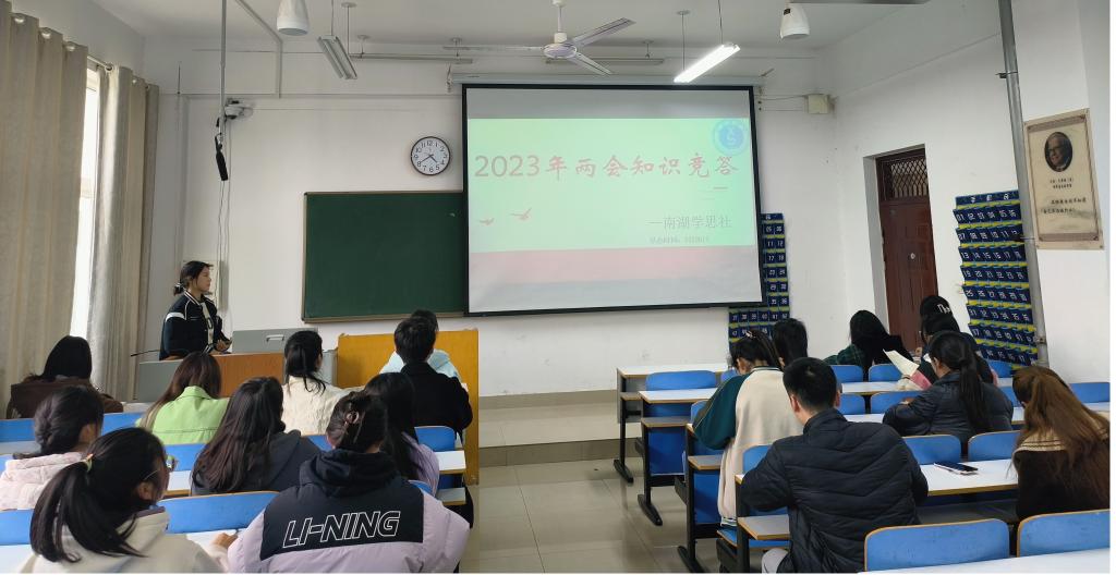 3月26日下午,太阳成集团tyc539“南湖学思社”在逸夫楼205教室举办“贯彻两会精神,勇当发展先锋”知识竞赛决赛,激励青年团员深入学习两会知识,准确把握两会精神。