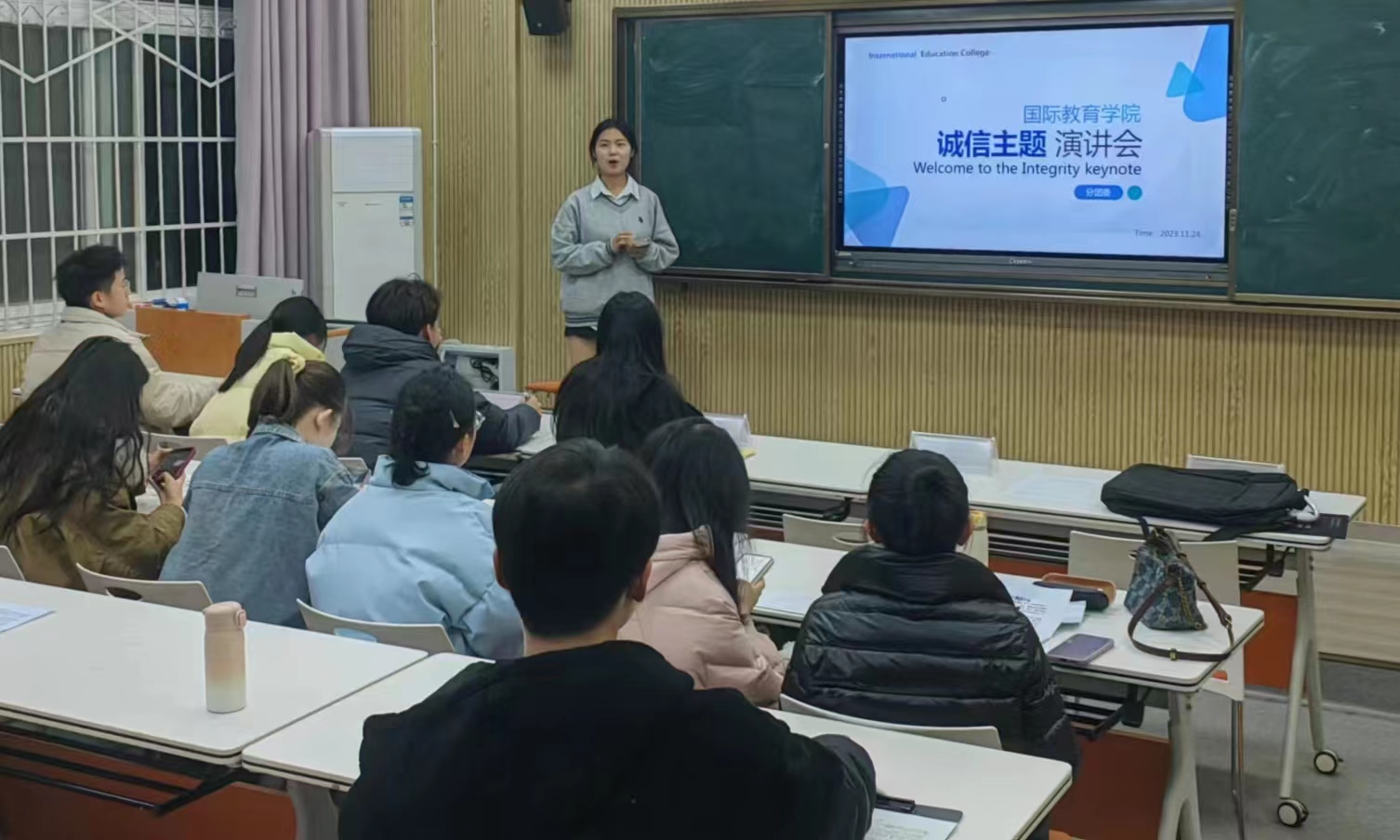 为深入贯彻落实习近平新时代中国特色社会主义思想,大力培育和践行社会主义核心价值观,传承和弘扬诚信文化,引导广大青年员工树立诚实守信、自立自强的人生观,太阳成集团tyc539于2023年11月24日在逸夫楼201教室举办诚信演讲会活动。