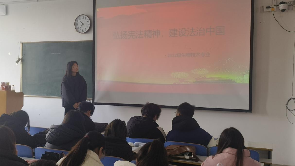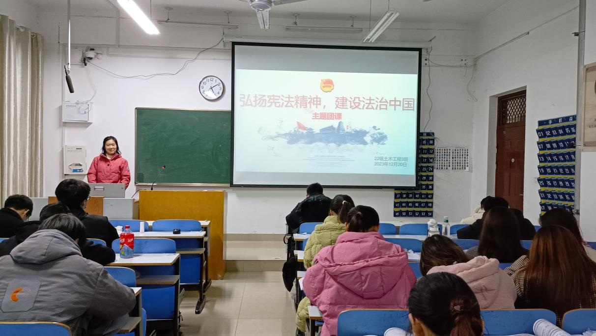 活动由各团支部书记主持开展,采用观看纪录片、讲解PPT以及小组讨论等形式,从我国法律的背景、宪法有效实施的作用等多方面带领团支部成员体悟宪法精神,深刻学习宪法精神的内容,要求同学们在日常生活中主动传承和弘扬宪法精神,通过各种形式和渠道,向全社会普及宪法知识,将宪法精神内化为精神追求,外化为自觉行动。