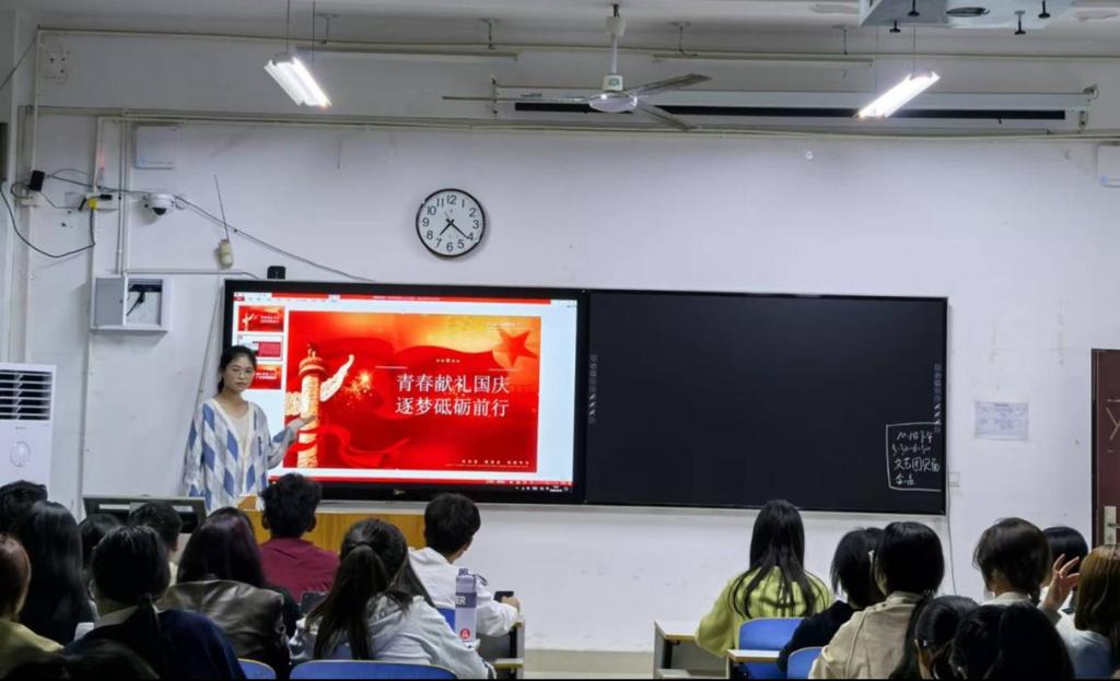 本次主题教育中,团支部书记介绍了本次政治理论学习的主题、目的和重要意义,强调国庆对于国家和青年的特殊价值。并通过图片、视频等资料回顾历年国庆的盛大场面,展示国家在不同时期的发展成就。会上邀请几位优秀同学分享他们对青春与国家关系的理解,讲述自己在学习和日常生活中如何以实际行动为国家贡献自己的青春力量,并组织小组讨论,让同学们交流自己对青春使命的认识,探讨如何在新时代更好地将个人梦想与国家发展相结合。活动最后团支部书记对本次政治理论学习进行总结,并鼓励大家在逐梦的道路上砥砺前行。