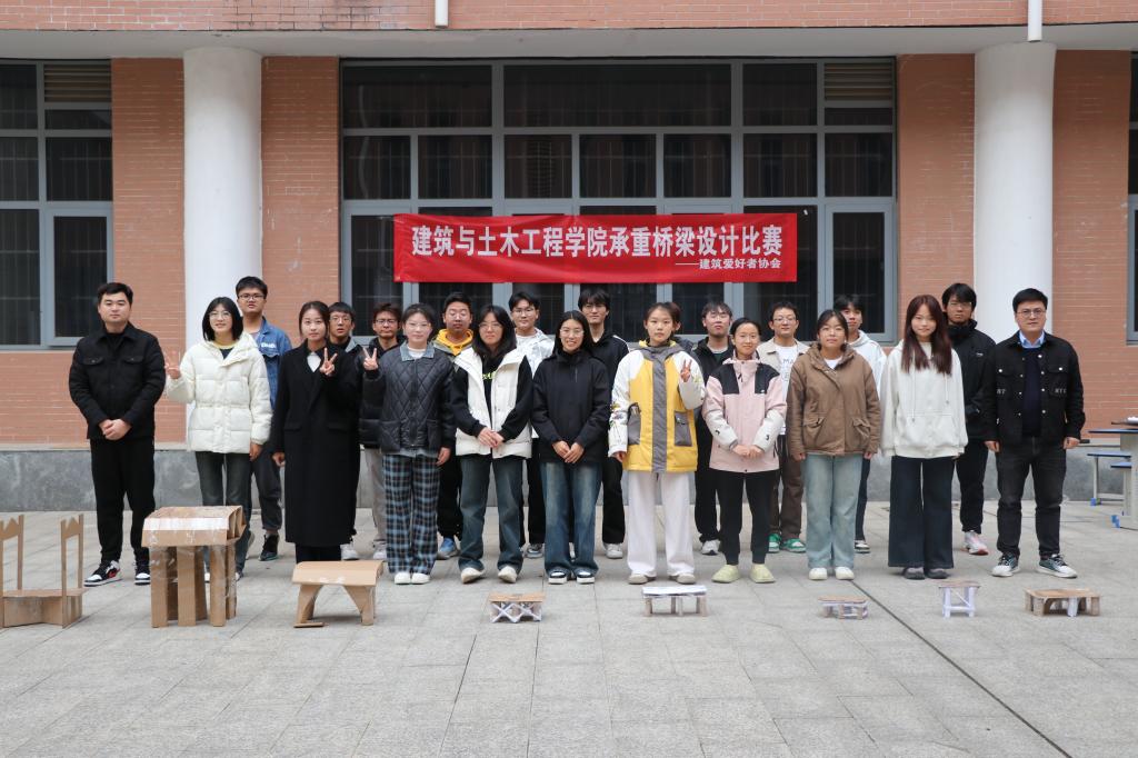 11月23日下午,太阳成集团tyc539与建筑土木工程公司在综合实验楼小广场联合举办承重桥梁设计大赛。