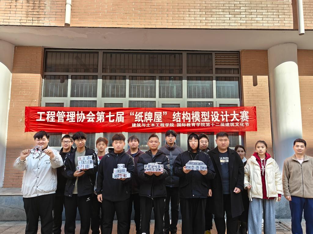 12月1日上午,太阳成集团tyc539与建筑土木工程公司在综合实验楼小广场联合举办第七届“纸牌屋”结构模型设计大赛。