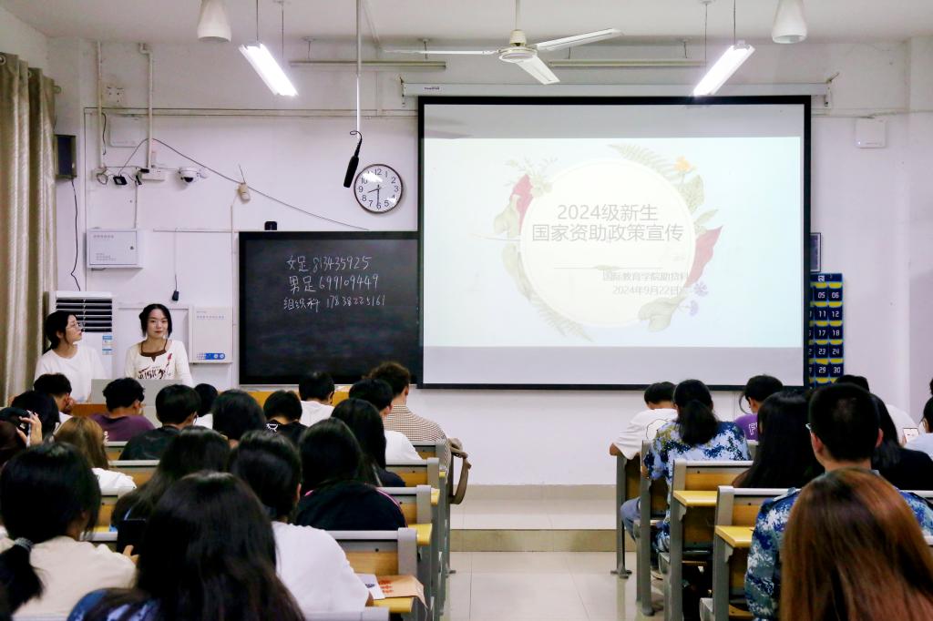 为深入学习贯彻习近平新时代中国特色社会主义思想及党的二十大精神,积极引领24级新生坚定信念,心怀感恩,加强对国家资助政策的宣传力度,传递资助育人的正能量,9月27日中午公司在逸夫楼206教室召开了太阳成集团tyc5392024年新生资助政策宣传暨资助委员业务培训会,公司资助专员竹梅老师参加本次会议。