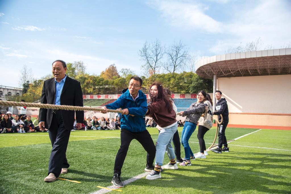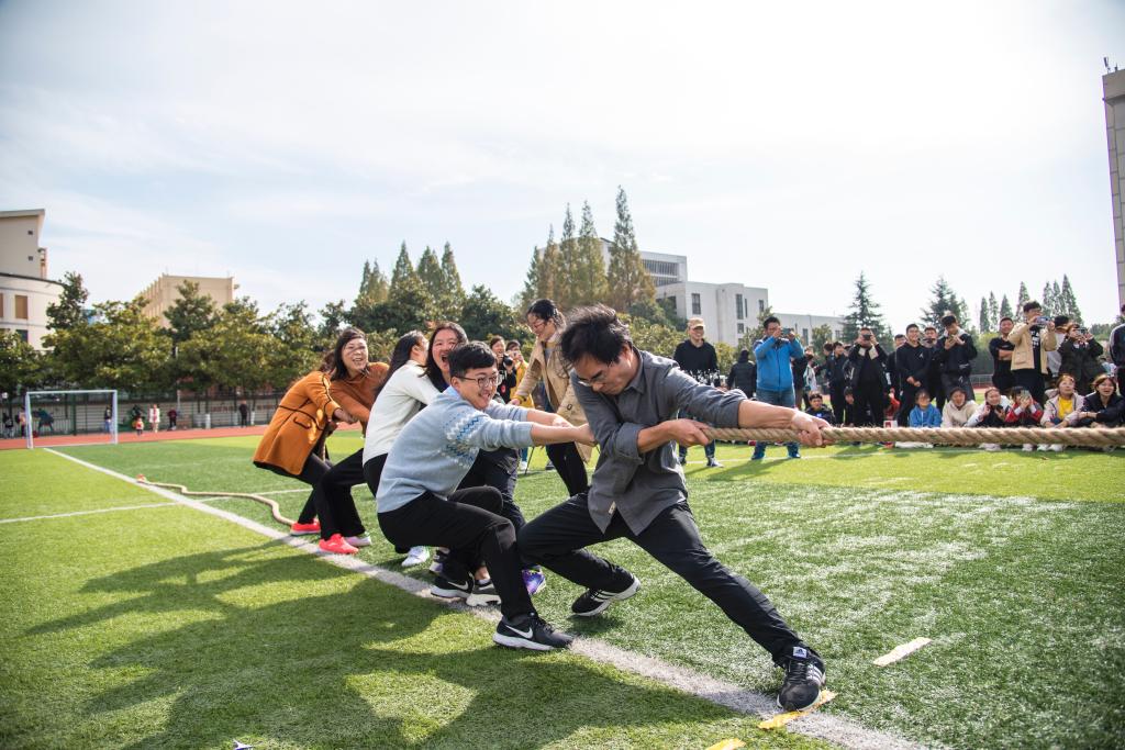 与传统运动会相比,趣味运动会将竞技与娱乐相结合,充分激发员工团结协作、合作共进的精神品质。运动会共设拔河、两人三足、袋鼠接力跳和多人接力跑四个集体项目。赛场上锣鼓声、呐喊助威声此起彼伏,师生活力澎湃、其乐融融。参赛选手积极践行“更快、更高、更强”的奥林匹克精神,全力拼搏、奋勇争先,充分展现了新时代老员工昂扬向上的精神风貌,彰显了国教学子自信、自强、坚韧、包容的精神品质。