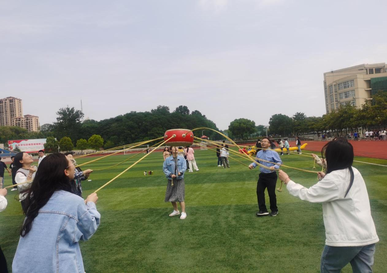 活动伊始,各班负责人提前到达场地,布置活动现场。本次活动以各班为一个整体进行热身游戏——“夹乒乓球接力赛”,以调动起同学们的积极性。预热赛结束之后,各组负责人带领成员进行各类素拓小游戏“珠行万里”、“一圈到底”、“同心鼓”、“疯狂毛毛虫”等。期间,老师们积极加入到同学们中,和同学们一同体验各类游戏。