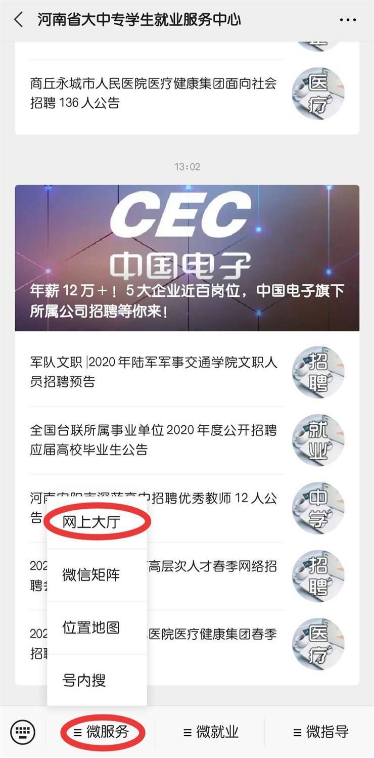 第一步:请员工关注“河南省大中专员工就业服务中心”微信公众号,关注后点击“微服务”—“网上大厅”—“报到证办理”先注册账号(手机号注册),然后进行所需要的业务办理。