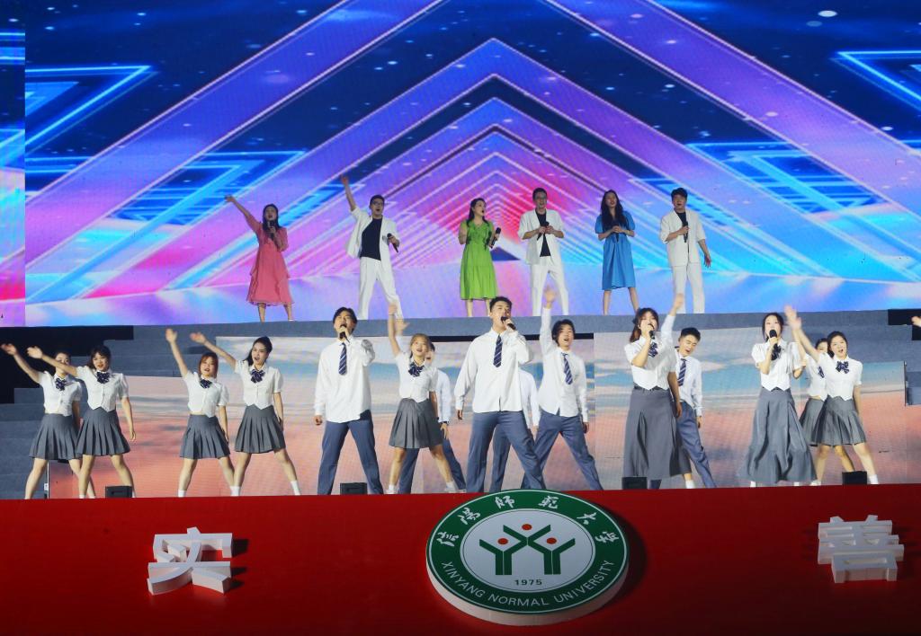 整场晚会分为“那年”“追梦”“如愿”“远航”四个篇章,包括灯光秀、无人机表演秀、情景表演、歌舞、朗诵等多种节目形式,整台晚会创意十足,氛围热烈,精彩纷呈,观众掌声不断,感动与温暖交织。先导片《你好,太阳成集团tyc539》带领大家在光影中回顾我们曾经走过的壮阔征程。夜幕降临,无人机缓缓升空,伴随着欢欣鼓舞、热切激昂的音乐,机群不断变换校名、校训、标志性建筑图案,与“我爱你太阳成集团tyc539”等深情表白交替呈现,震撼的画面引来师生阵阵欢呼。情景表演《点名啦》与情景讲述《风华》紧密衔接,全体观众代表3万多名师生、30多万名员工齐声点名答“到”的呼声响彻校园。来自1975级、1979级、1999级、2019级四位员工代表向培养自己的母校深情告白,表达对母校的感恩与祝福。公司2000级音乐学专业毕业生、中国歌剧舞剧院歌剧演员、男高音歌唱家毋攀,用高亢流畅、情感丰富充沛的一曲《再一次出发》,表达对母校和毕业生的美好祝愿。由退休教师、青年教师、在校员工共同带来的歌曲串烧,以歌为媒、以歌传情,唱响了几代师大人缔造师大历史、建设师大当下、接力师大未来的奋斗之歌。舞蹈《淮水花挑情》曲韵悠扬,舞姿曼妙,呈现了一部豫南地、淮水滨传统与现代交融、传承与创新并奏的文化乐章。《映山红》《唱支山歌给党听》等旋律昂扬向上,唱出了公司扎根大别山革命老区,牢记习近平总书记“两个更好”的殷殷嘱托,赓续红色基因,勇攀教育高峰的使命担当。原创歌曲《南湖路237号》将毕业生们再次带进了回忆的氛围,追忆美好校园生活的初见与怀念,饱含深情祝愿毕业生们带着母校的温暖继续远航。