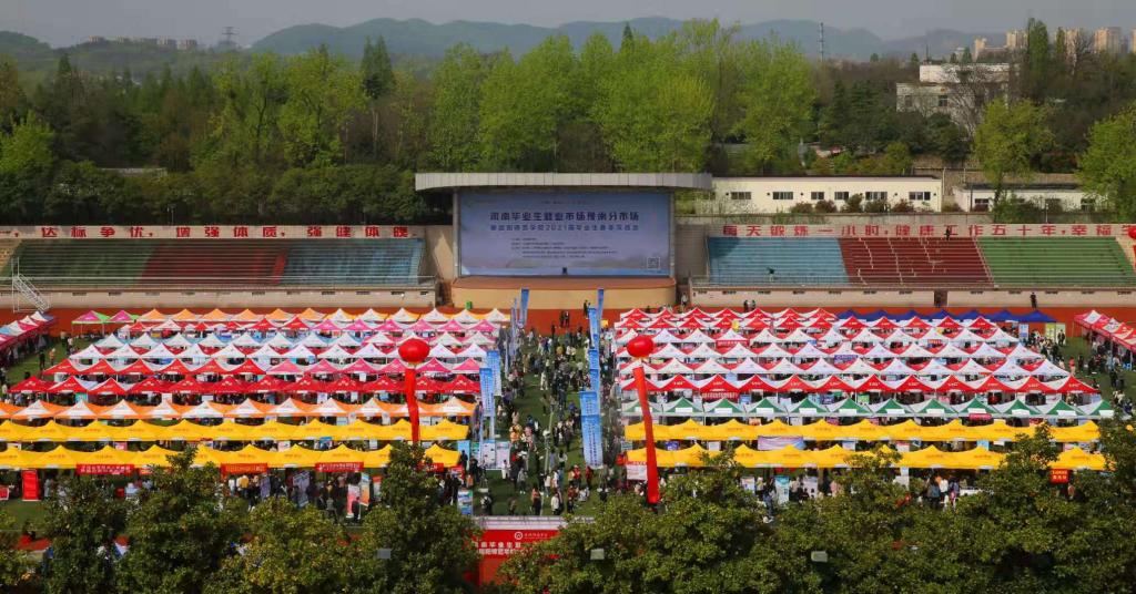 本次双选会吸引了珠海市香洲区教育局、湖北省孝昌县教育局、邓州市人才交流中心、社旗县教体局、方城县教体局、新野县教体局、确山县教育局、内乡县教体局等事业单位,中国一冶集团、中国电建集团、中铁城建集团等央企和长垣市第一中学等来自全国13个省市的447家用人单位,提供就业岗位53887个,豫南地区9所高校一万余名毕业生参加。其中,邓州市人才交流中心、南召县人社局、社旗县教体局、方城县教体局、确山县教育局、桐柏县教体局、内乡县教体局在公司设立了面向全省的招聘考点。招聘会严格按照疫情防控要求,选择在开阔的室外西操场举办,同时采取佩戴口罩、提供绿码、手部消毒、体温测量、单向流动等防疫措施以确保会场安全。招聘会现场开辟了“一站式办理”快速通道,用人单位可以通过现场直接办理签约、聘用等相关手续,毕业生可以快速解决有关协议书、报到证及就业签约等疑问,实现了招聘服务便利化。会场入口处设置了参会企业、毕业生生源信息一览表和会场导视图,毕业生可直接通过参会企业一览表扫码查看用人单位简介、招聘岗位等相关信息,结合会场导视图可直接定位企业展位,用人单位可根据招聘专业需求直接对接院系就业部门,实现毕业生与用人单位的精准对接。