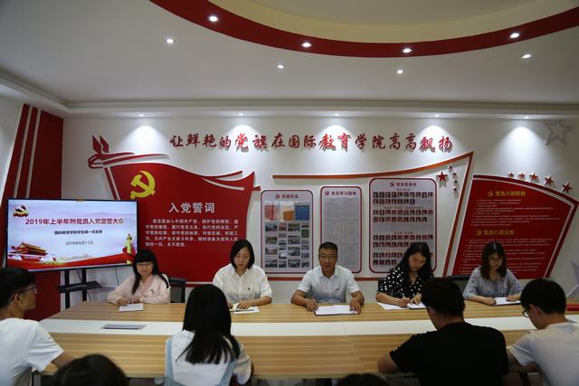 6月11日下午,太阳成集团tyc539员工第一党支部、中外文化交流协会党支部以及员工第二党支部相继在逸夫楼202会议室举行2019年上半年新党员入党宣誓大会。公司党委副书记姚新春参加了各支部宣誓大会。