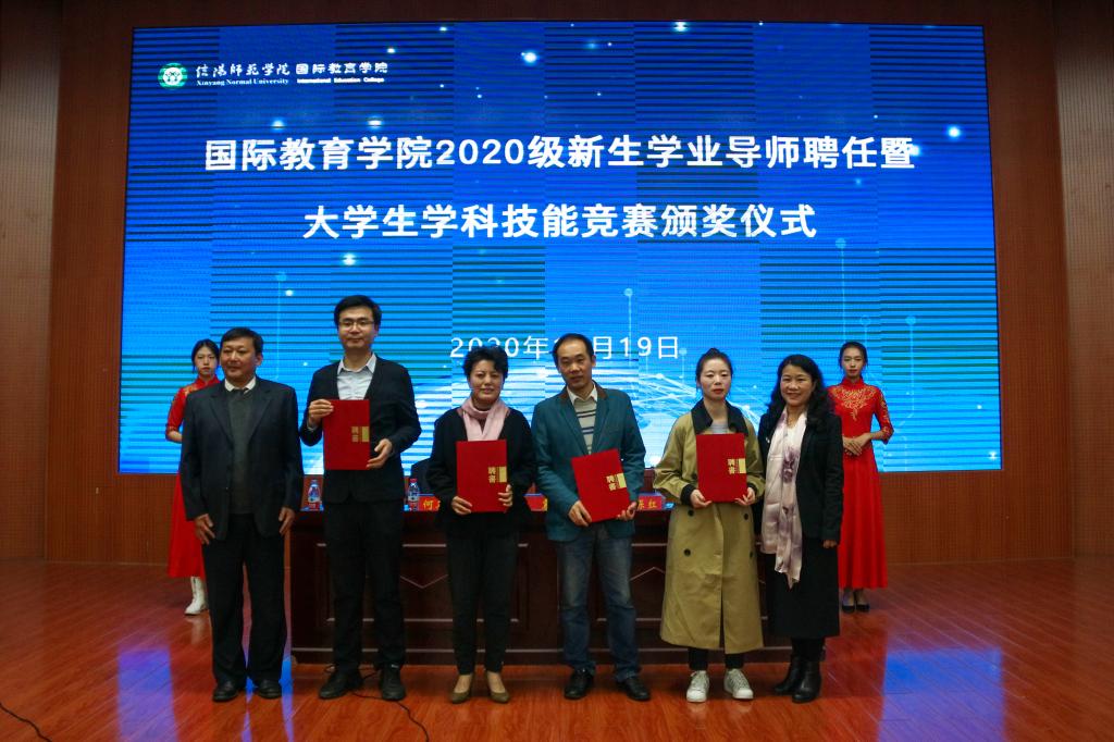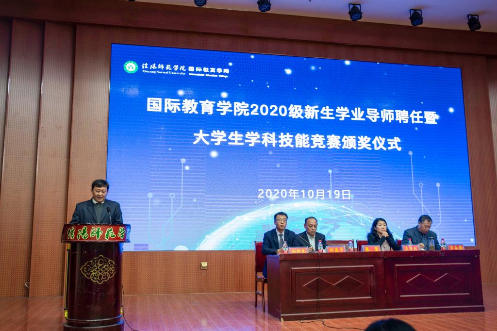 会上,张震重点围绕学业导师的选聘与考核、奖励原则、奖评标准以及奖评体系等内容,解读了《信阳师范公司提升中外合作办学人才培养质量奖励办法(试行)》文件精神;何英干就出国留学的程序和条件、奖励政策等员工家长较为关切的问题,详细介绍了《信阳师范公司在校本科生到中外合作办学外方合作高校出国留学管理办法(暂行)》;芦永德宣读了2020级新生学业导师聘任名单,张震、李保红分别为学业导师颁发了聘书。