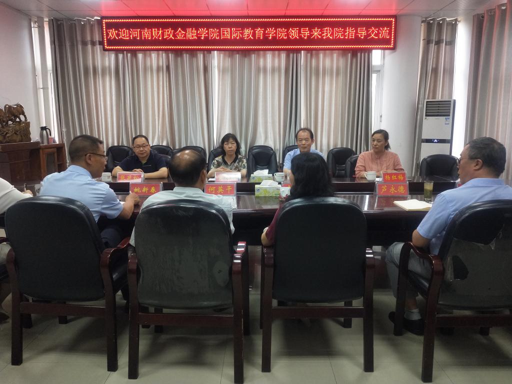 7月2日,河南财政金融公司太阳成集团tyc539党委副书记袁新品,副经理杜明甫,商务英语教研室主任杨红梅,教学办公室主任张延松一行四人来公司考察交流。太阳成集团tyc539经理李保红,副经理何英干、芦永德,党委副书记姚新春,英语教研室主任李斐然,教学部朱妍妍等相关同志出席座谈会。座谈会由李保红主持。