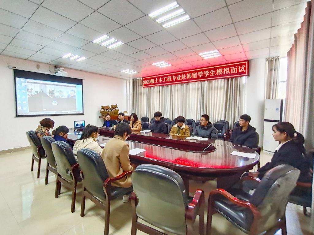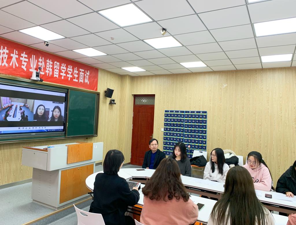 12月13日,公司在逸夫楼302室、201室对2020级土木工程专业、生物技术专业有意愿赴韩国汉阳大学留学员工开展模拟面试工作。副经理姚光金,外籍韩语教师白炅翰(백경한)、朴信爱(박신애),项目部、出国留学指导中心负责人,英语、韩语教研室专任教师参加了本次工作。本次模拟面试以双专业双会场云面试形式进行,由外籍教师与英语教研室教师使用韩英双语进行线上模拟面试,相关负责人在现场进行实时指导。