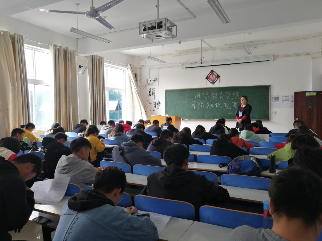 为增强公司员工的爱国意识、普及老员工国防知识,11月7日中午,公司在逸夫楼206、207、209教室举办了国防知识竞赛(初赛)。2019级新生班主任余艳楷、吴浩、沈艳霞三位老师和员工干部一起担任监考老师。