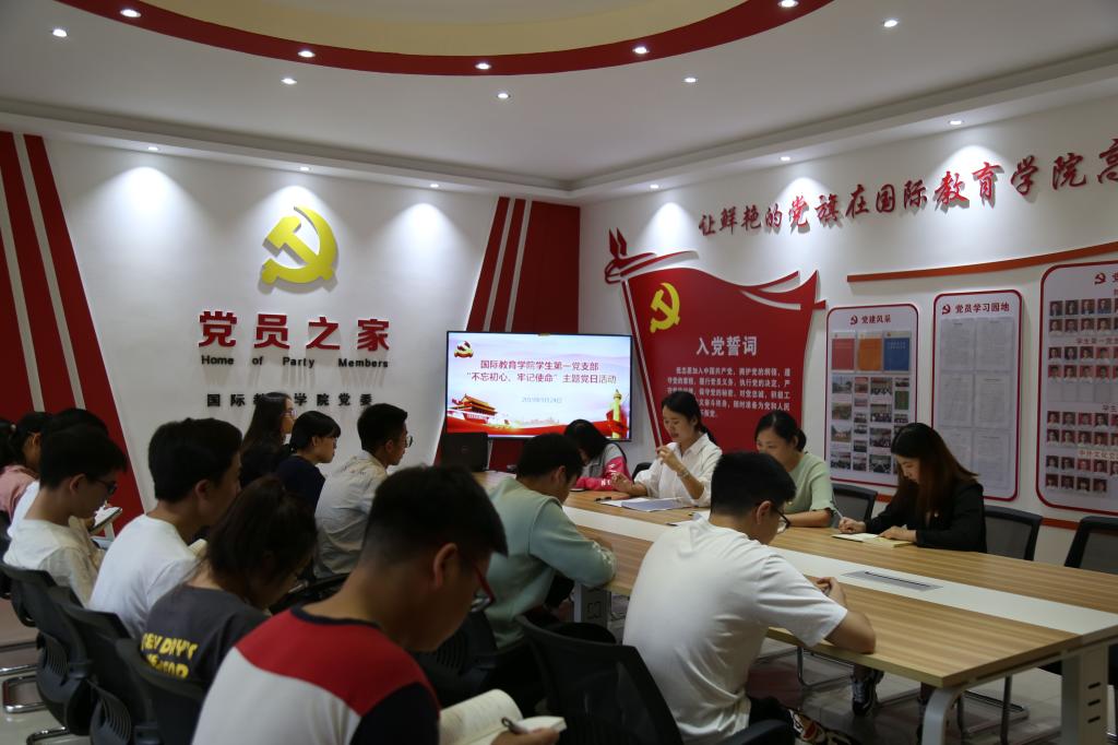 9月24日下午,员工第一党支部在逸夫楼202党员之家开展主题党日活动。会上,组织委员张雨雪传达了《中共信阳师范公司委员会关于开展“不忘初心、牢记使命”主题教育的实施方案》精神;全体党员观看了《初心永恒》专题纪录片;党员交流发言;支部书记余艳楷对本次“不忘初心、牢记使命”主题教育支部以及党员层面需要开展的工作进行了强调,希望每名党员能够认真落实“守初心、担使命,找差距、抓落实”总要求,制定一个学习计划,列出一个问题清单,开展一次志愿服务,实现一次思想政治洗礼;全体党员重温了入党誓词。