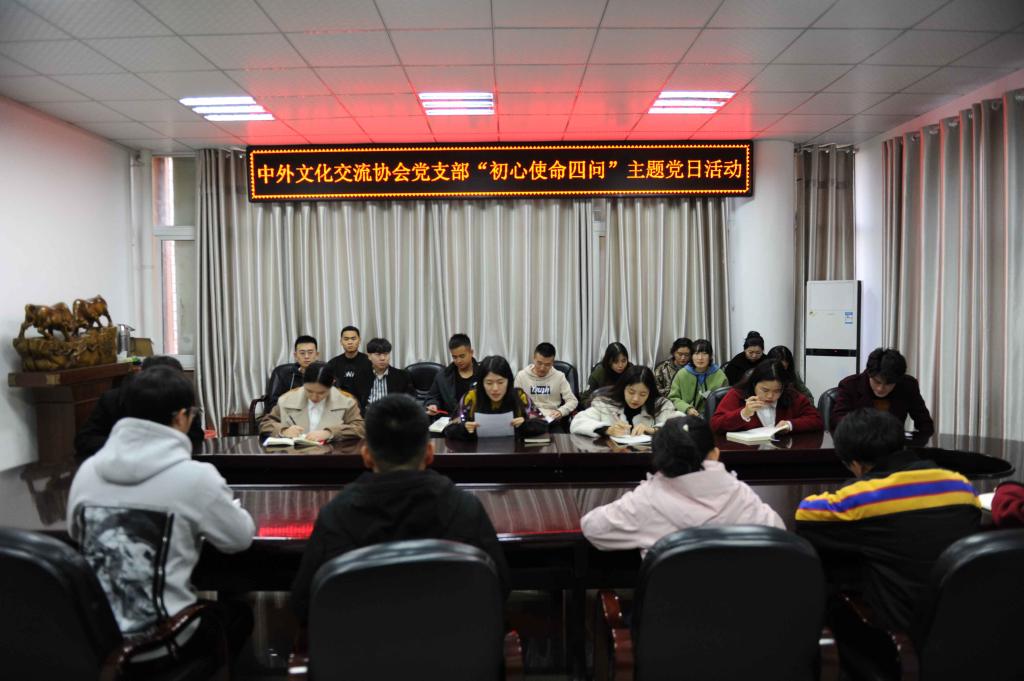 11月18日下午,太阳成集团tyc539中外文化交流协会党支部在逸夫楼302会议室开展“初心使命四问”主题党日活动。中外文化交流协会党支部组织委员竹梅以及员工党员,入党积极分子参加。