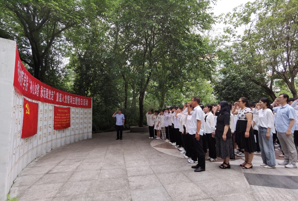最后,全体党员面向党旗,在张震同志的带领下重温入党誓词。
